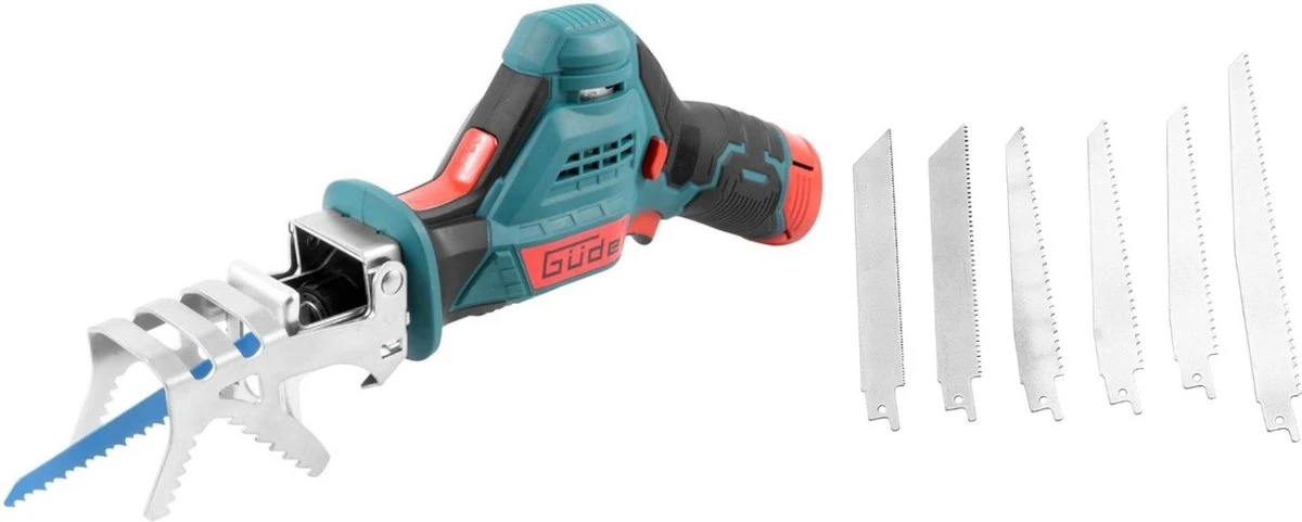 Met deze Güde accu takkenzaag met extra zaagbladen kan je niet meer alleen takken zagen, maar ook door licht metaal heen zagen. Bij deze set zitten, naast de universele accu takkenzaag met 1 zaagje, ook nog 2 6 houtzaagbladen, 2 8 houtzaagbladen en 2 6 metaalzaagbladen. Zo heb je voor elke klus het juist zaagblad in huis.