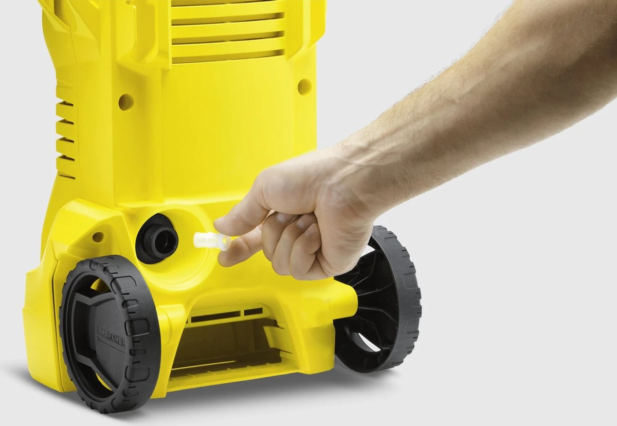 - Volle reinigingskracht: de uitrusting van alle Kärcher hogedrukreinigers omvat een geïntegreerd zuigmechanisme voor de reinigingsmiddelen.