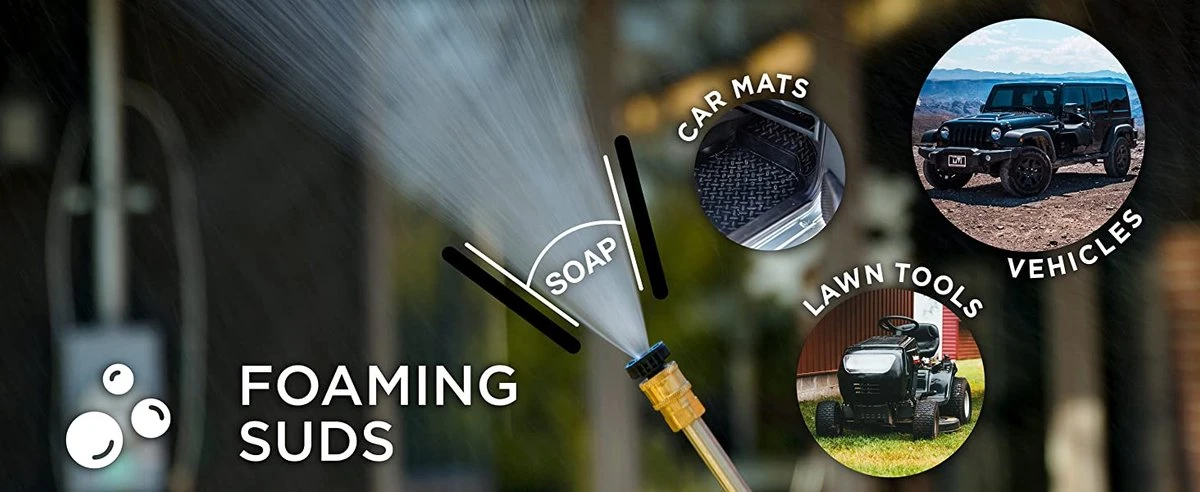 Stalen frame is stevig gelast om duurzaamheid te garanderen en biedt bescherming aan het apparaat. Deze hogedrukreiniger op benzine wordt geleverd met een professionele hogedrukreiniger met een ergonomische handgreep, corrosievrij en roestvrij stalen hogedrukreiniger met 5 snel aan te sluiten spuitmondpunten variërend van 0°, 15°, 25°, 40° en zeep voor diverse en veelzijdige reinigingstaken. De hogedruk antiknik en corrosiebestendige flexibele zachte slang zijn ingebouwd om bestand te zijn tegen hoge druk en stijf gebruik. Deze heeft ook premium pneumatische wielen voor eenvoudige mobiliteit en gemak tijdens het wassen.